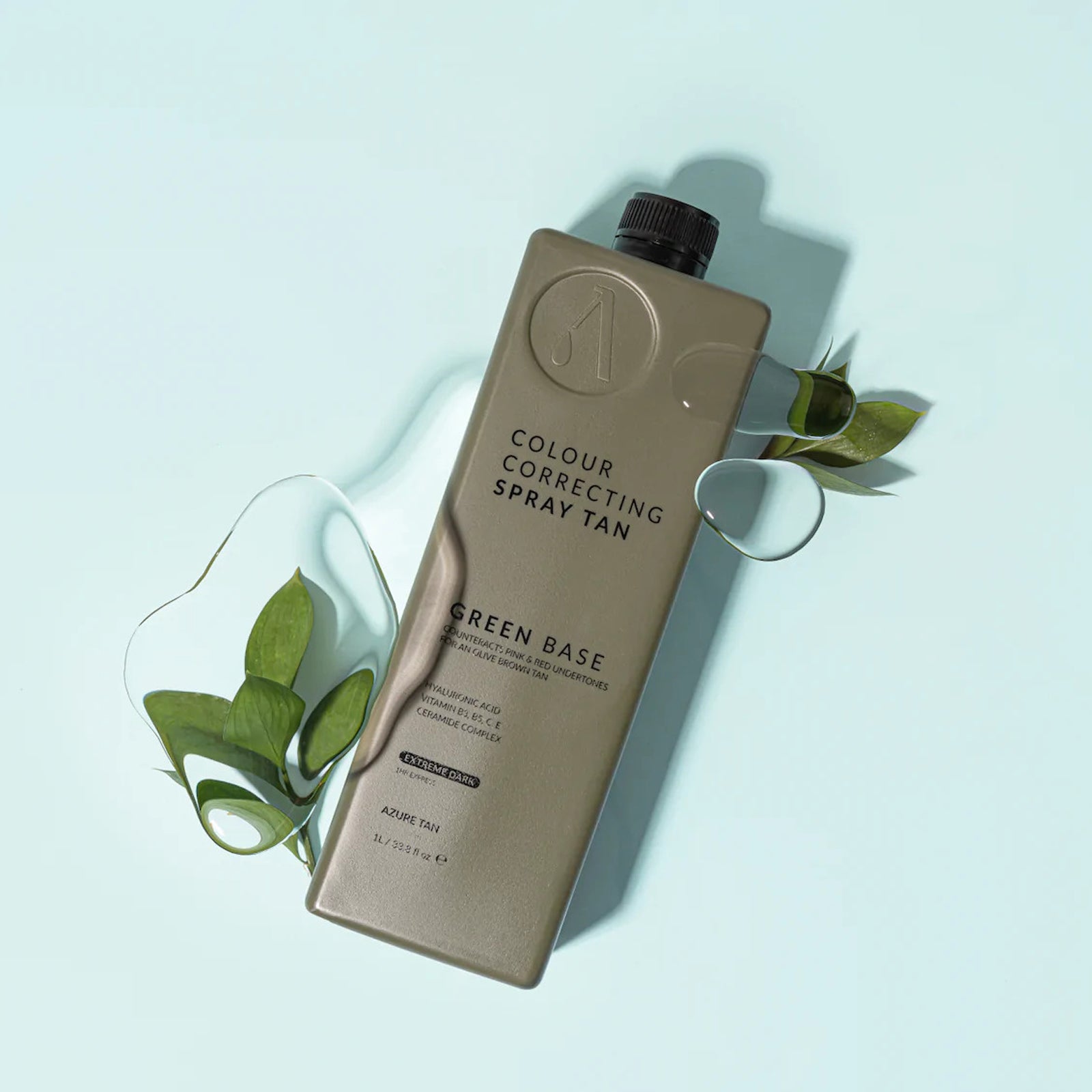 Azure Tan Green Base Spray Tan colour corrects pink & red skin tones to eliminate any orange and give an olive-brown skin finish. Extremely dark results will start to develop from 1 hour. Leave on for up to 3 hours for the deepest tan. This product also doubles as a skincare treatment for the body, to help fight signs of ageing and leave the skin feeling hydrated and nourished. Suitable for face and body.