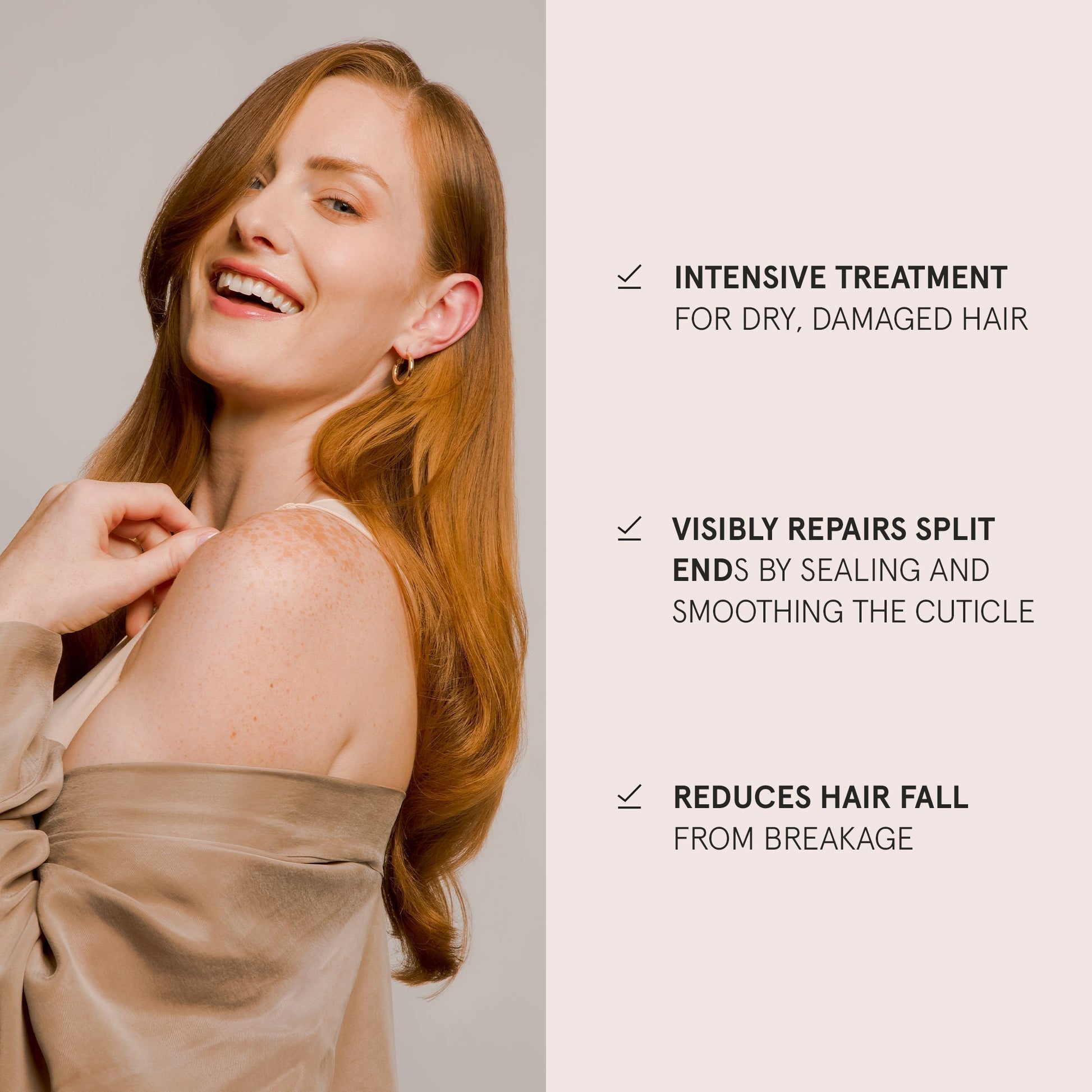 A vegan leave-in split-end repair therapy treatment that instantly seals split ends, repairs frayed ends and brittle hair and reduces frizz for healthier-looking hair.