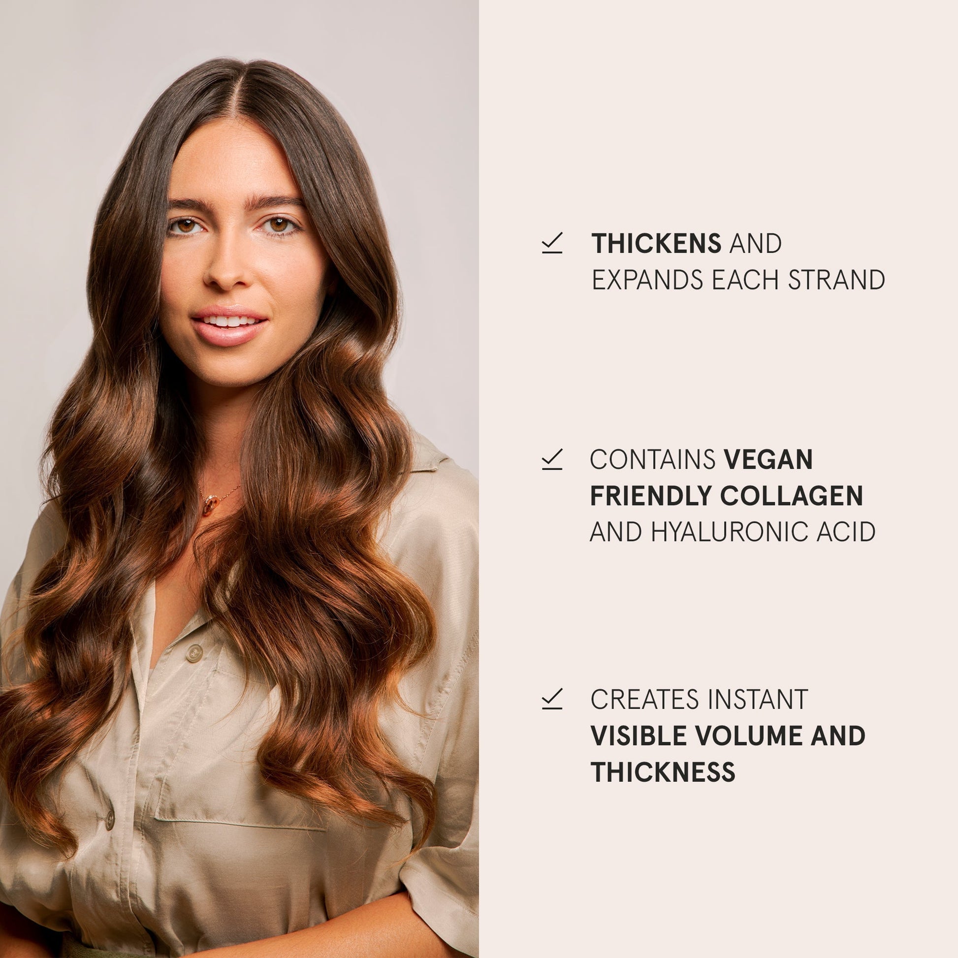 - Densifying and volumising complex developed to plump up the hair fibres for instant visible volume and thickness.