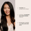 This gentle vegan shampoo lifts at the roots while expanding and plumping each strand, delivering instant thickness and volume.