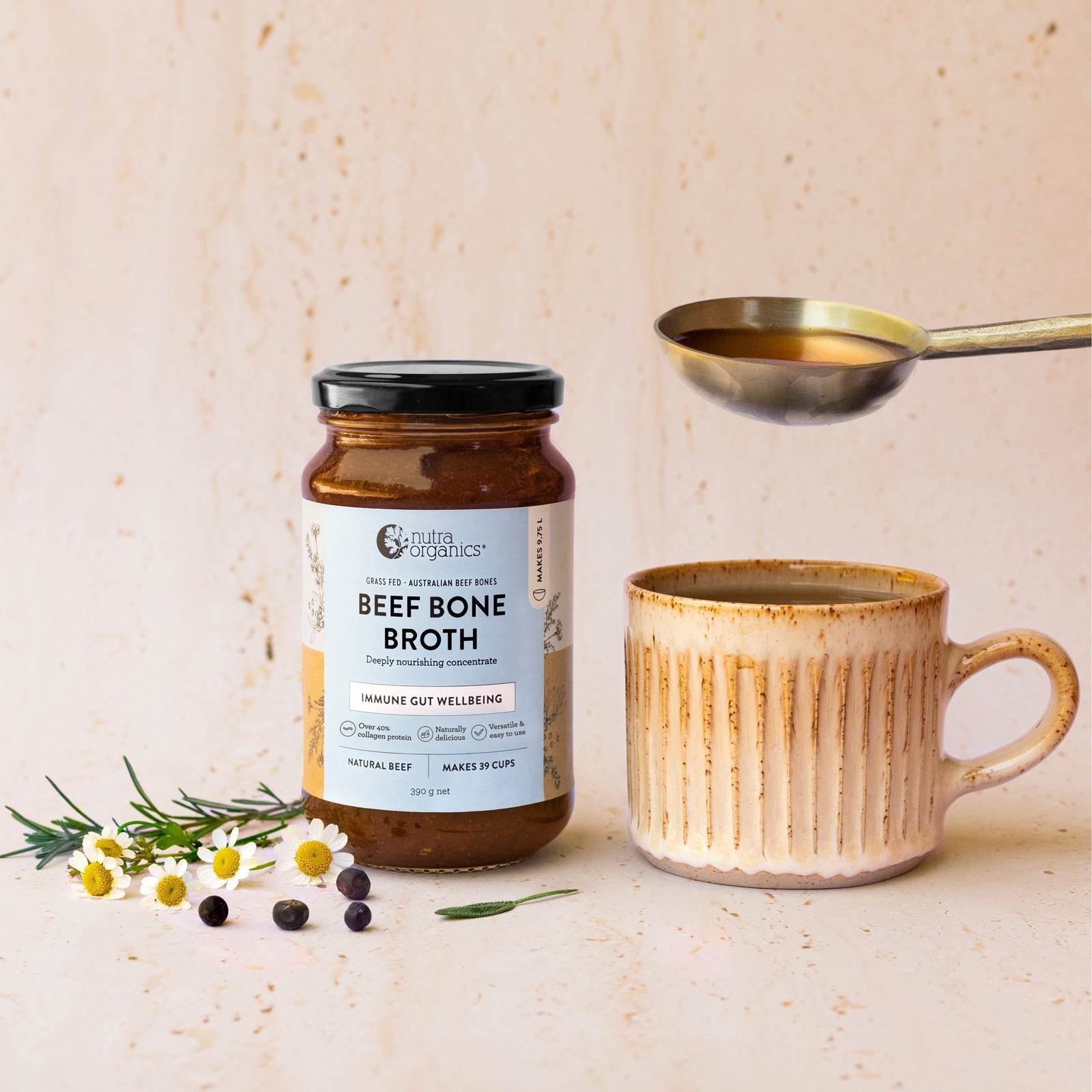 Discover the delicious taste of Nutra Organics Beef Bone Broth Concentrate Natural Beef! Made from natural, slow-simmered bones, this nourishing broth is perfect for creating savoury soups and stews. Enhance your meals with the wholesome, rich flavour of Nutra Organics Bone Broth!