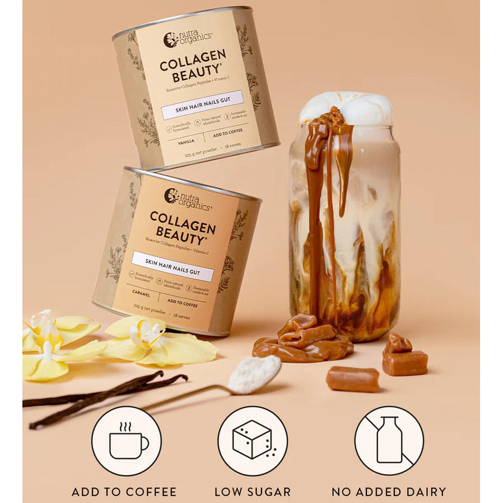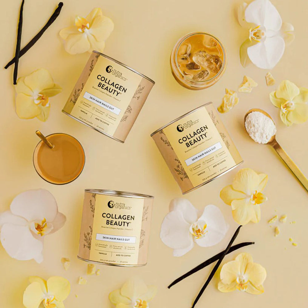 Nutra Organics naturopathically developed Collagen Beauty utilises scientifically researched VERISOL® bioactive collagen peptides, which have been shown in multiple studies to reduce skin wrinkles, improve skin hydration and elasticity, and improve hair strength and thickness. Together with organic wholefood bioavailable sources of Vitamin C and Zinc, Collagen Beauty provides the necessary nutrients needed to promote collagen production in the skin, as well as healthy hair and nails. And with a generous amount of collagen in every serving (7-10g depending on the flavour) - you'll experience faster & better results than most other products that only provide 3g or less collagen per serve.