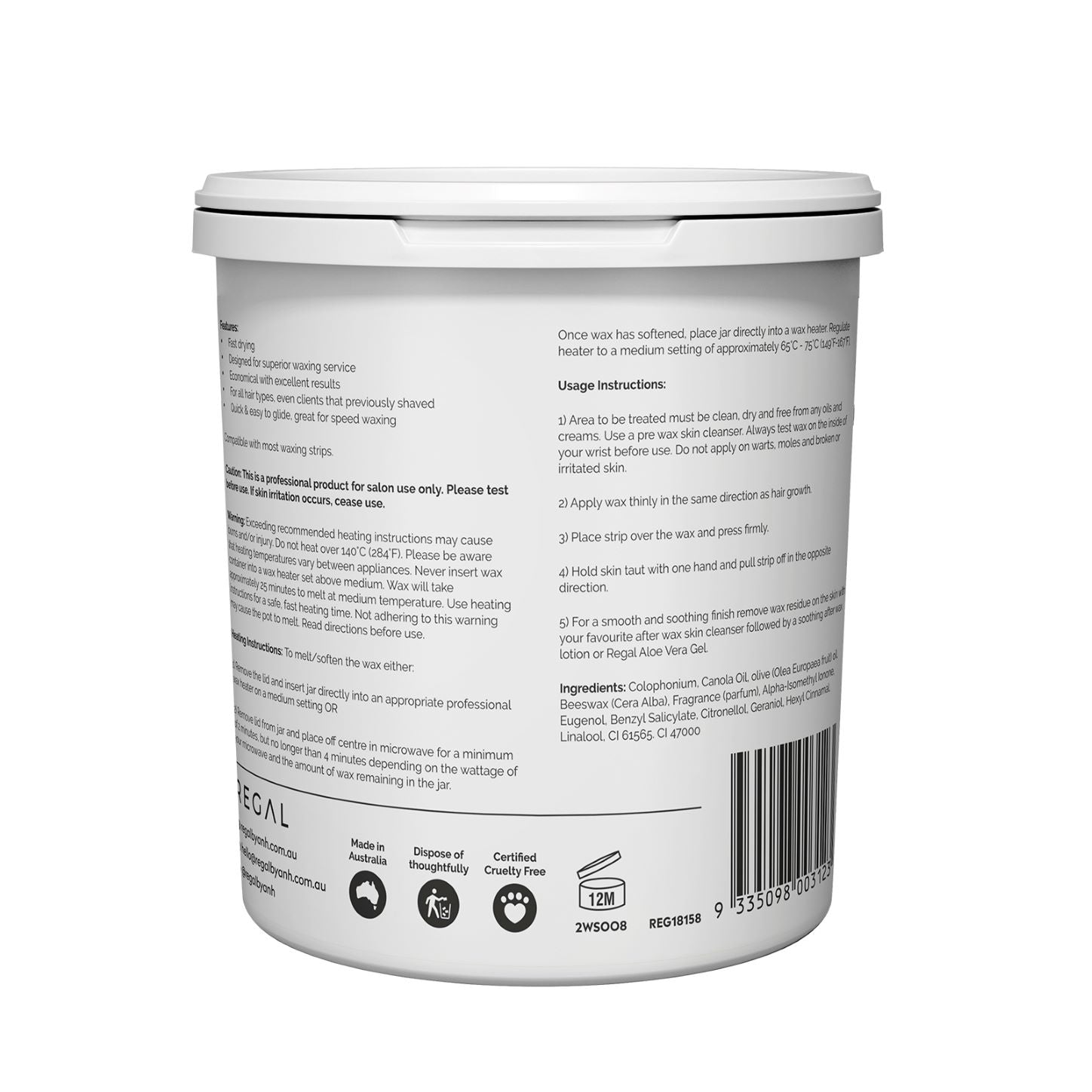 Regal by Anh Barely There Australian Olive Oil Strip Wax Microwaveable 800ml