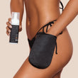 Get your mitts on (the fun part). Shake the bottle first. Grab your VANI-T Bronzing Mitt and start applying your self-tanning mousse, using gentle circular movements.