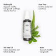 • Tea Tree Oil is made from the leaves of an Australian native plant, tea tree helps reduce the build up of dead skin related to blocked scalp pores.