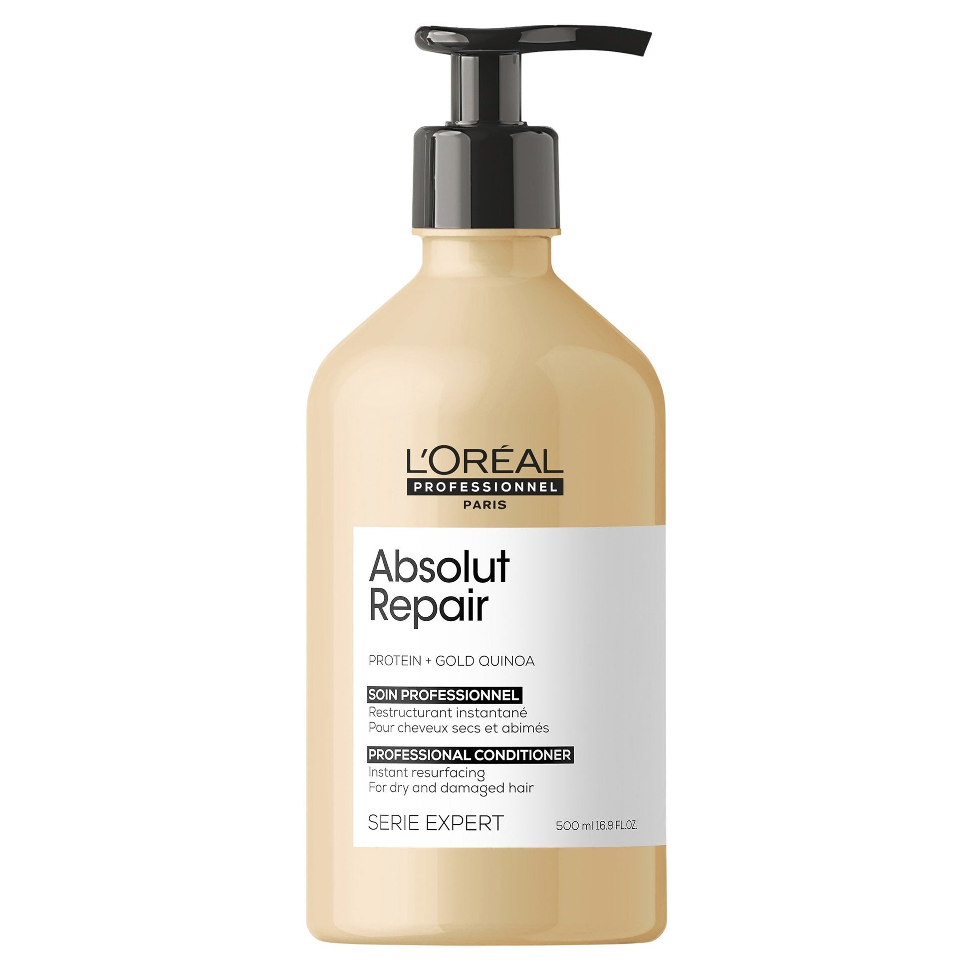 L'Oréal Professionnel's Absolut Repair conditioner provides the ultimate professional repair experience for damaged and dry hair. The repairing conditioner visibly resurfaces damaged hair with a very light and soft touch, treats and detangles without weighing the hair down. The hair is manageable and shinier after the treatment routine. The fiber is strengthened and restored thanks to the powerful superfood ingredients quinoa and protein. This professional formula is used and approved by hairdressers and part of their in-salon treatment in L’Oréal Professional Paris salons all around the world. For an optimum anti-damage repair result, apply the three step Absolut Repair haircare routine including the cleansing and nourishing shampoo, the repairing conditioner and the 10-in-1 multi purpose leave in spray.​