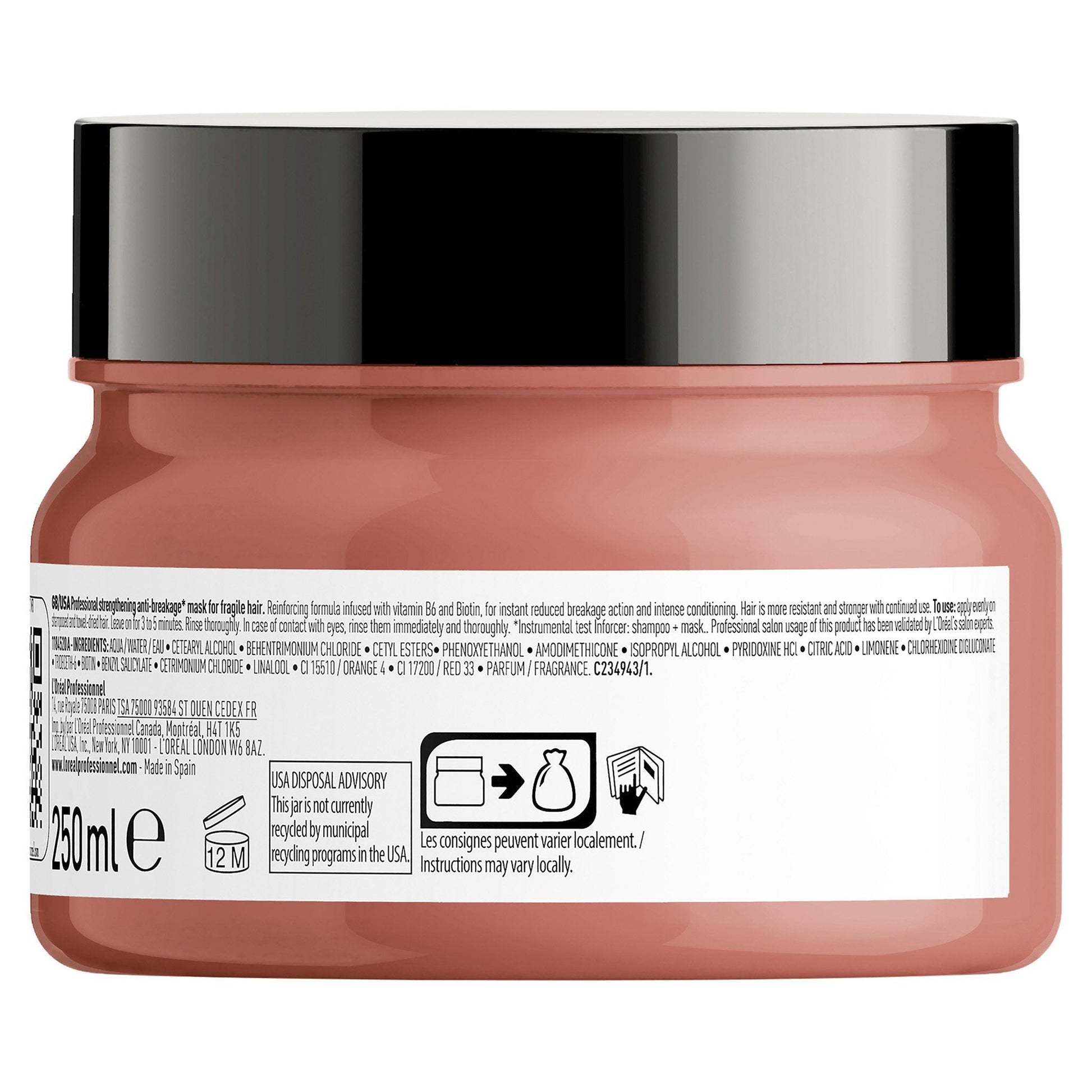L'Oréal Professionnel's Inforcer Mask deeply replenishes and transforms fragile and damaged hair. Reinforcing, indulgent, creamy formula for normal to fragile hair infused with vitamin B6 and Biotin, for instant reduction of breakage and intense conditioning. A technology specially designed to tackle breakage and split ends. Enriched with strengthening properties of Biotin and Vitamin B6, the rich mask gently restores hair density and resilience. With continued use the Inforcer mask helps your hair to become more resistant and stronger. The reinforcing mask is recommended for: Fragile and breaking hair, especially long hair. For best results, use in conjunction with Serie Expert Inforcer Shampoo.