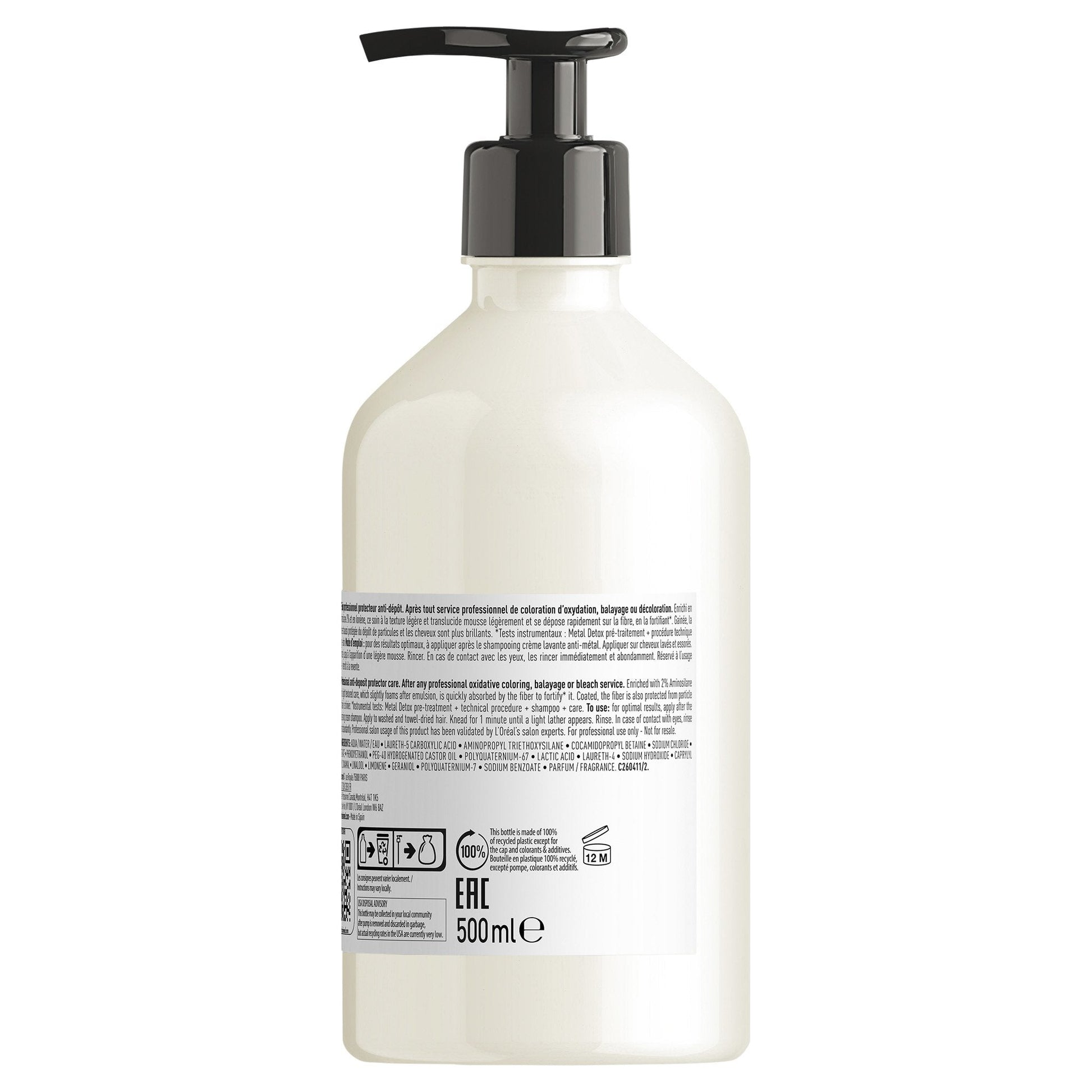 Metal inside the fiber creates both a risk of breakage and negatively impacts color results during colour, balayage and lightening services. The level of metal in hair varies, depending on hair porosity and on the water quality where we live. The L'Oréal Professionnel Metal Detox anti-deposit protector conditioner protects the fiber from particle deposits after any color, balayage or lightening service. It maintains color vibrancy with insense shine. Hair is instanly smoother, softer & more nourished. This internationally patented technology is enriched with Glicoamine a molecule small enough to penetrate and neutralise metal inside the fiber. For optimal results, use after your Metal Detox in-salon service to prevent new metal deposits.