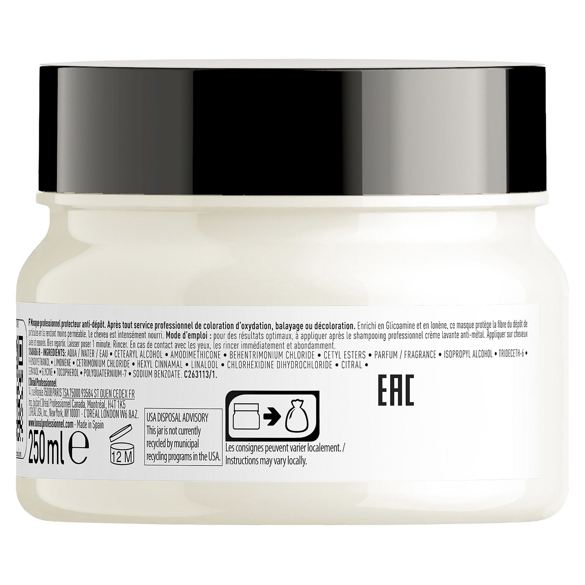 Metal inside the fiber creates both a risk of breakage and negatively impacts color results during colour, balayage and lightening services. The level of metal in hair varies, depending on hair porosity and on the water quality where we live. The L'Oréal Professionnel Metal Detox anti-deposit protector mask protects the fiber from particle deposits after any color, balayage or lightening service. It maintains color vibrancy with insense shine. Hair is instanly smoother, softer & more nourished. This internationally patented technology is enriched with Glicoamine a molecule small enough to penetrate and neutralise metal inside the fiber. For optimal results, use after your Metal Detox in-salon service to prevent new metal deposits.