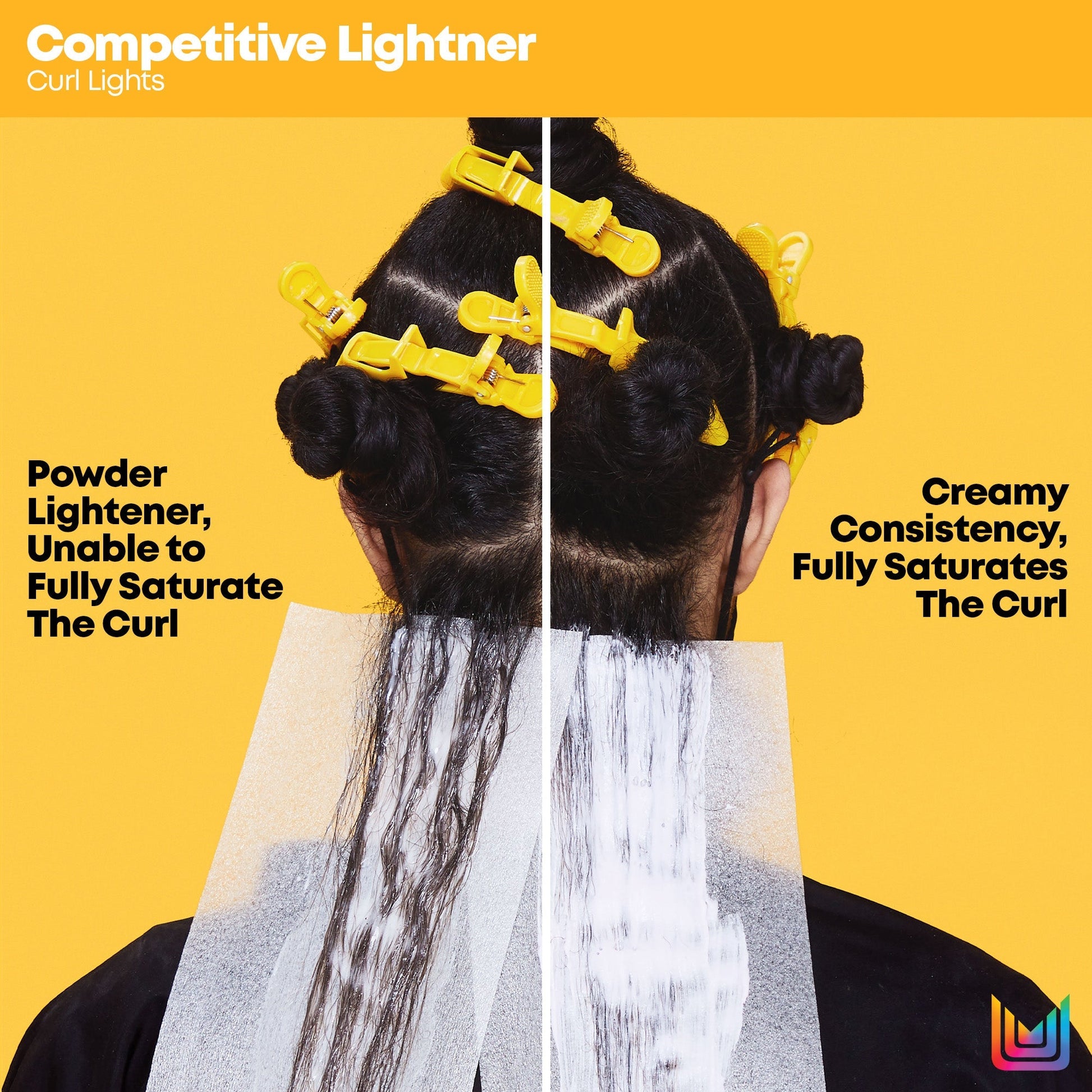 Curl Pattern Preserving Lightening System with an ammonia-free formula that provides up to 5 levels of lift in 15 minutes.