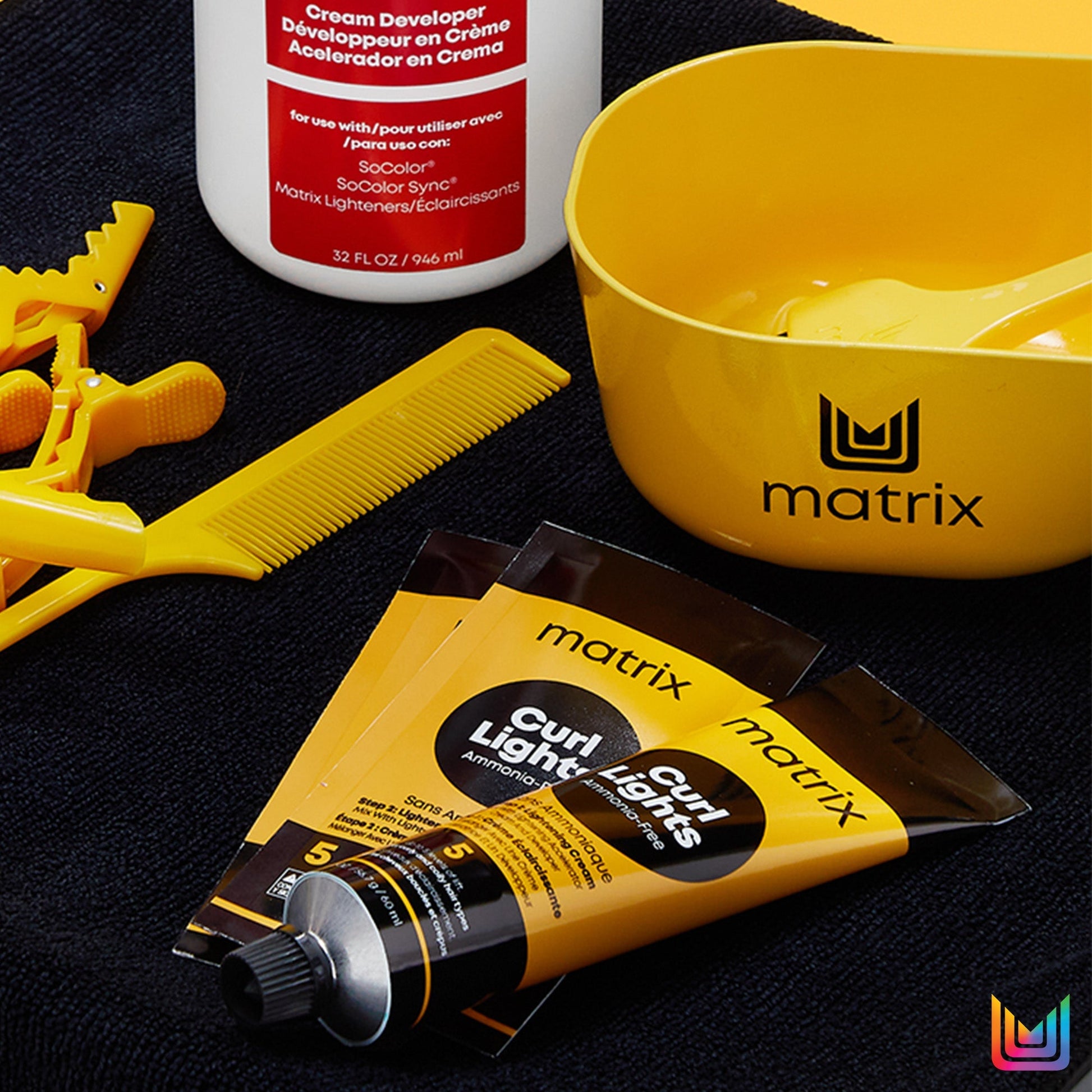 Step 3: Matrix Universal Developer 20, 30, or 40 Volume. Choose based on the natural level of hair.