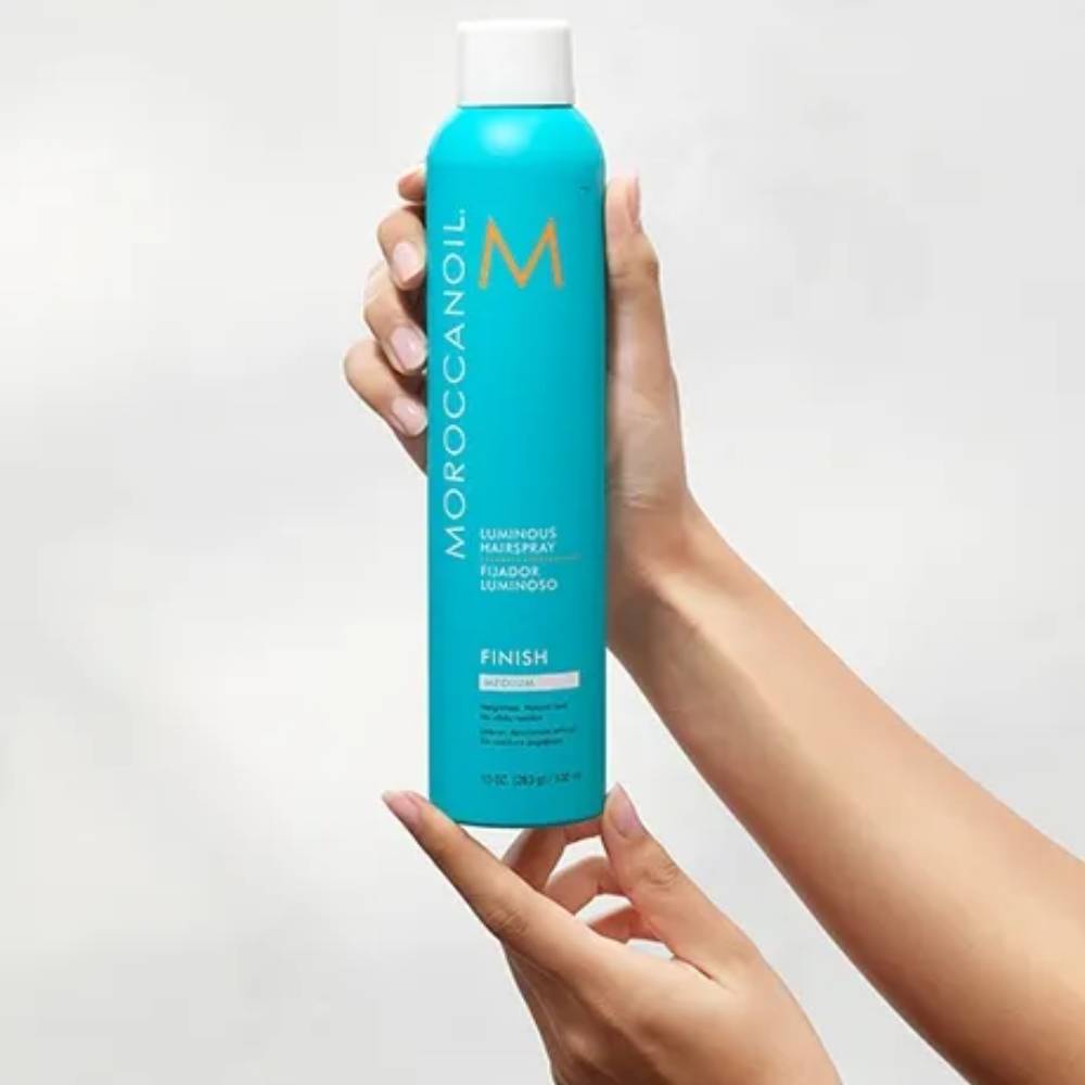 This medium hold, flexible hairspray provides long-lasting, weightless hold for soft and natural styles. Moroccanoil Luminous Hairspray Medium is a lightweight and workable hairspray that veils hair in a reflective shield of shine that fights frizz and humidity, yet brushes out easily and leaves no sticky or flaky residue. Infused with a combination of advanced ingredients, including nourishing antioxidant-rich Argan oil. Medium hold is ideal for natural styles, including easy updos (such as ballerina buns and ponytails) and blowouts.
