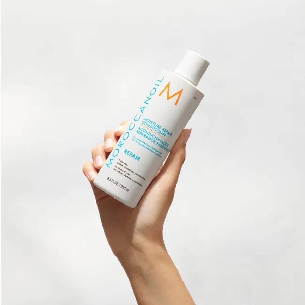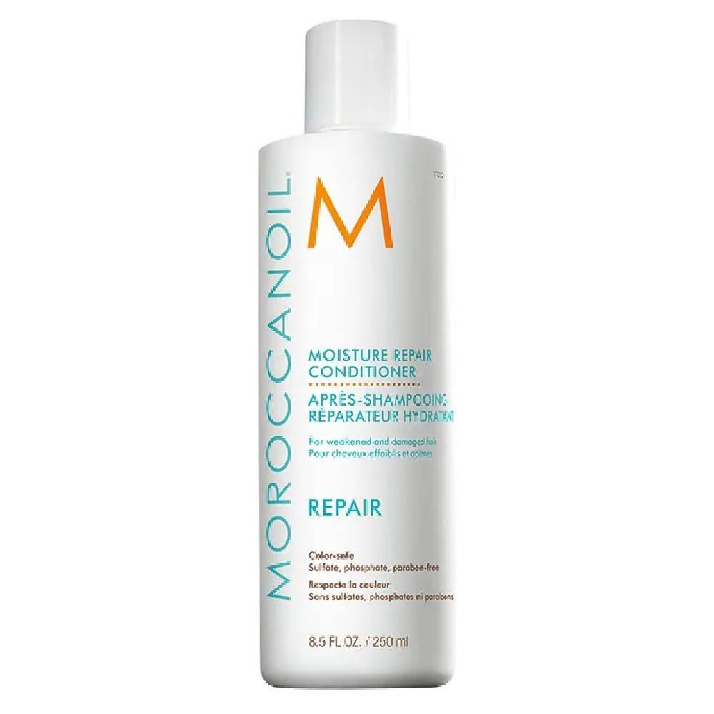 Moroccanoil Moisture Repair Conditioner gently and effectively detangles and conditions the hair to leave it hydrated, manageable and strong. Its highly concentrated, reparative formula restores hair's health, moisture and elasticity with antioxidant-rich Argan oil, reconstructive keratin and fatty acids.