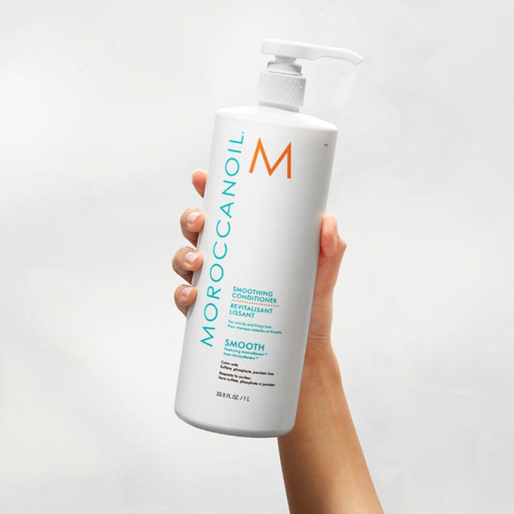 This gentle conditioning and detangling formula works to smooth and tame hair for silky, frizz-free results. Moroccanoil Smoothing Conditioner, featuring our proprietary AminoRenew ingredient, restores depleted amino acids to strengthen and align hair's natural keratin structure. Strands are instantly nourished with antioxidant Argan oil and Argan butter, leaving you with healthy-looking, calm, manageable and smooth hair. When used with Moroccanoil Smoothing Shampoo, results can last up to 72 hours.