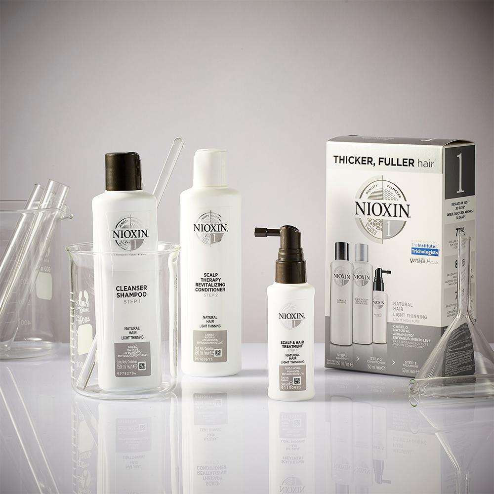 Nioxin hair care System 1 kit for natural hair with light thinning amplifies hair structure and protects against hair breakage. This unique set of three professional hair products, based on an advanced skin care approach, is specially formulated as a hair thickening treatment, delivering fuller-looking hair.