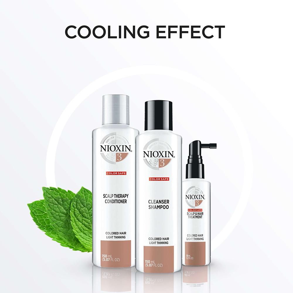 The nioxin system 3 regimen reduces hair loss due to breakage, strengthens the hair and delivers a healthy shine to color treated hair, while refreshes the scalp. The nioxin cleanser shampoo removes dirt, excessive oil and other environmental residues from the scalp and hair. Nioxin scalp therapy conditioner is a lightweight conditioner that helps provide hair resilience, hydrates scalp and hair from root to tip. Nioxin scalp & hair treatment refreshes the scalp and increases hair volume of every strands.