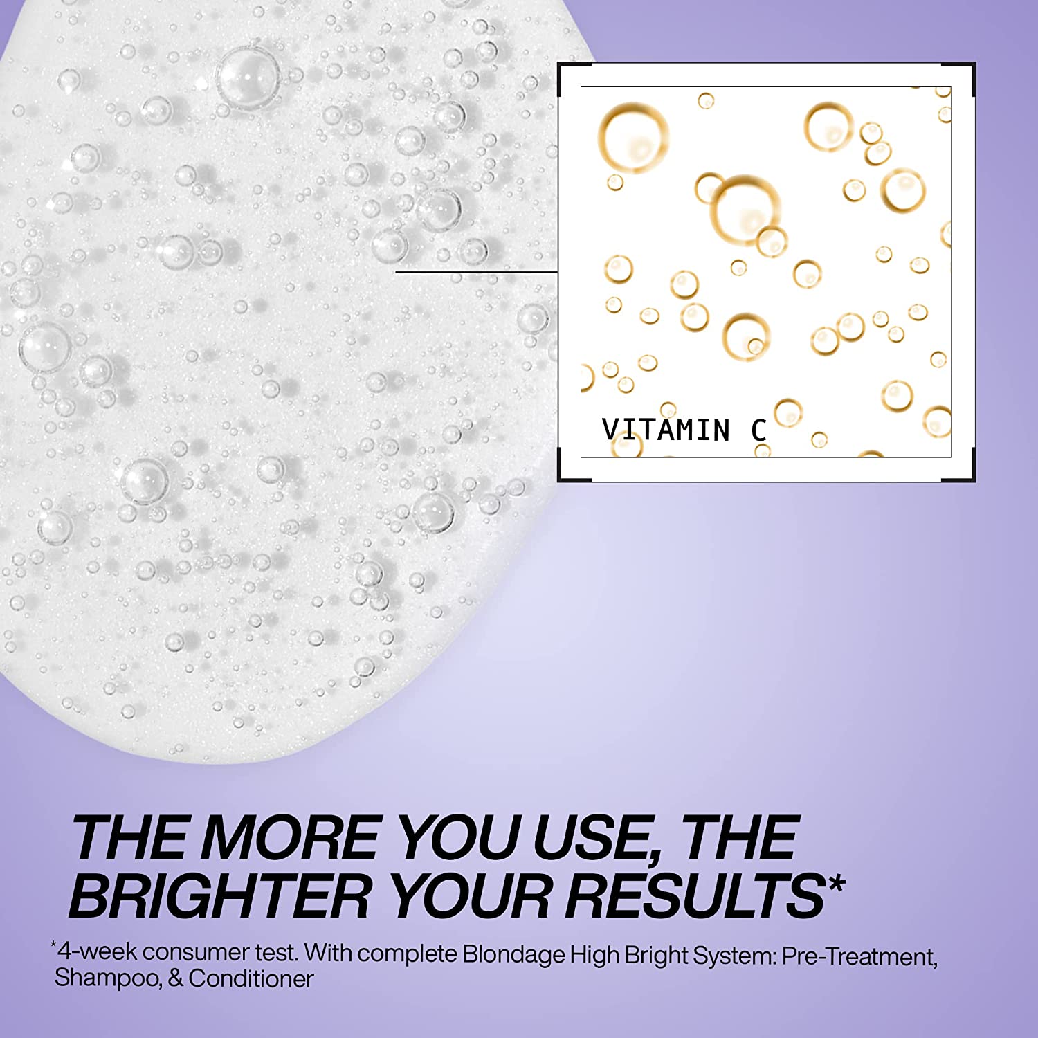 Blondage High Bright Shampoo is the answer for blondes who lose lightness and brightness in the weeks between salon visits. This shampoo is step #2 in the full High Bright regimen, a new blonde haircare system powered by Vitamin C and Redken's Brightening Care Complex. This system washes away buildup and impurities in hair, brightening dulled, darkened or mattified blonde hair caused by dulling agents and pollution. Get an instantly brighter blonde in one use when you use the entire High Bright system.