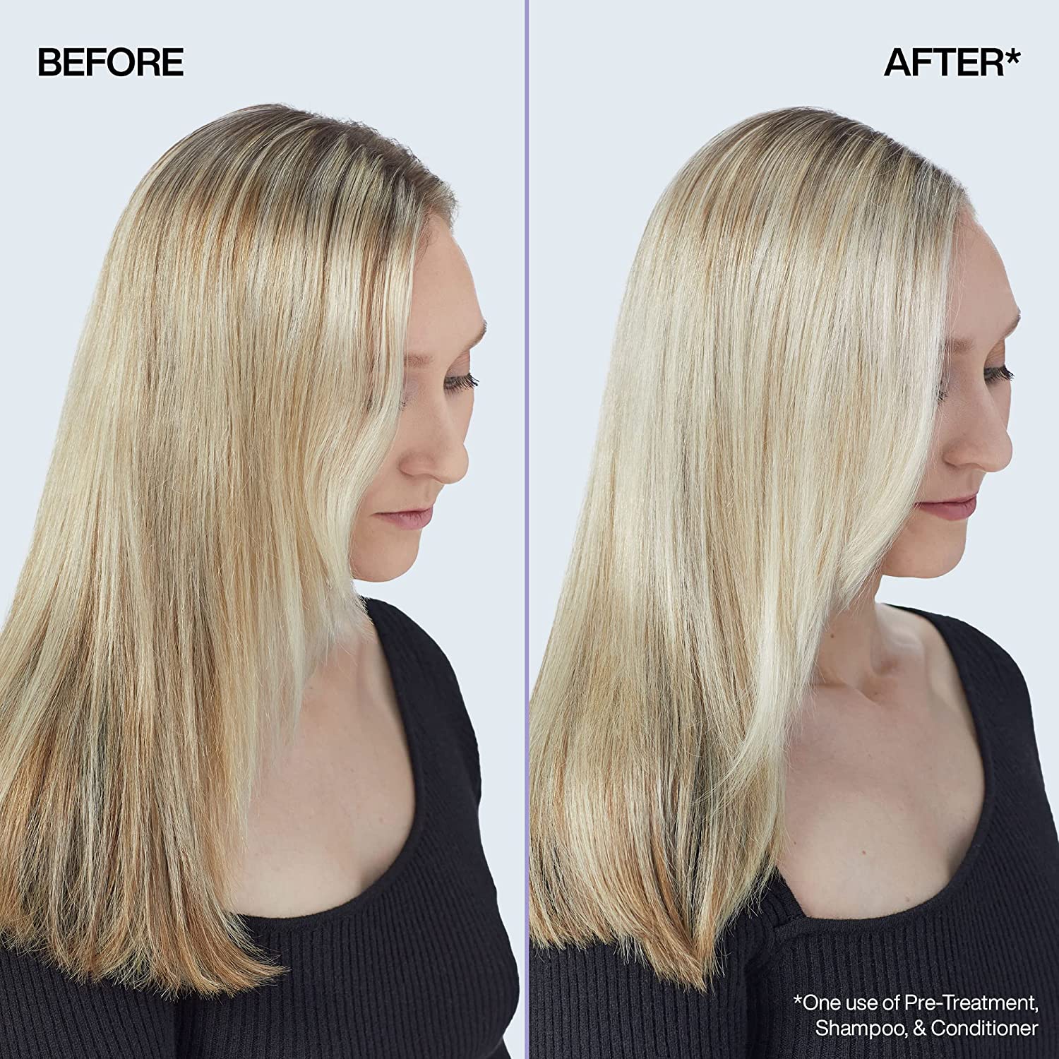 This new regimen washes away buildup and impurities on dull, darkened hair for a brighter blonde.