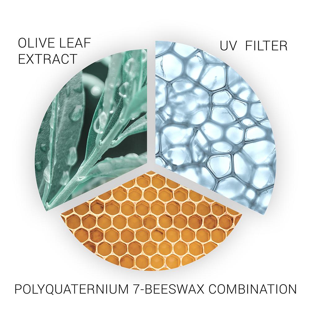 - Olive Leaf Extract: combats UV radicals and bleaching
