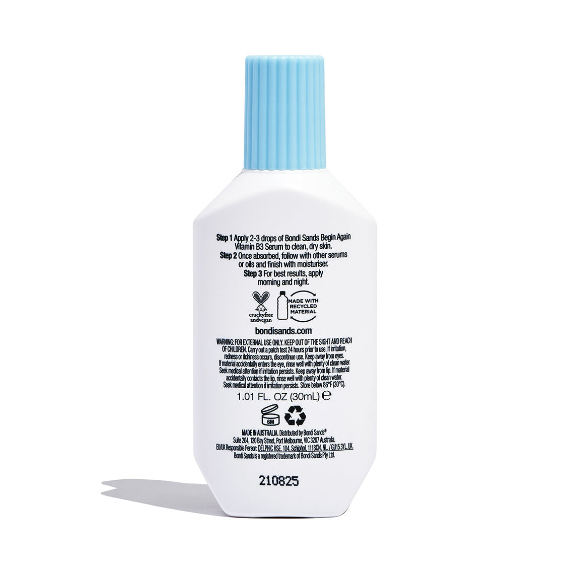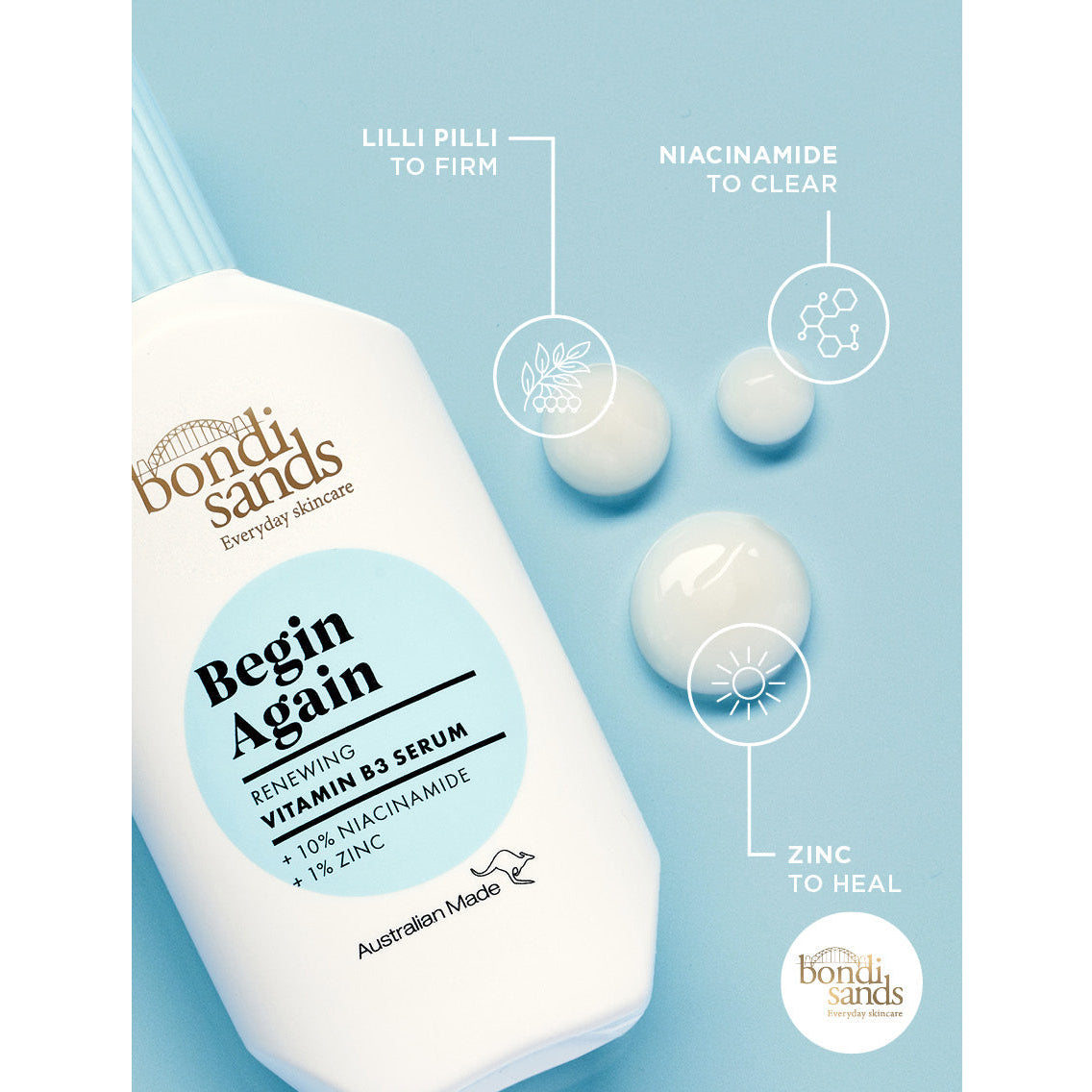 - Apply 2-3 drops of Bondi Sands Begin Again Vitamin B3 Serum to clean, dry skin.