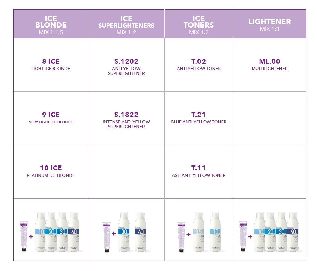 This new professional line of exclusive technical products is dedicated to blonde, bleached, and lightened hair. The range offers a colouring and bleaching system that neutralises undesired yellow tones during technical services in the salon.