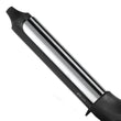 - Spring-activated lever for securing the tips of the hair while creating curls.