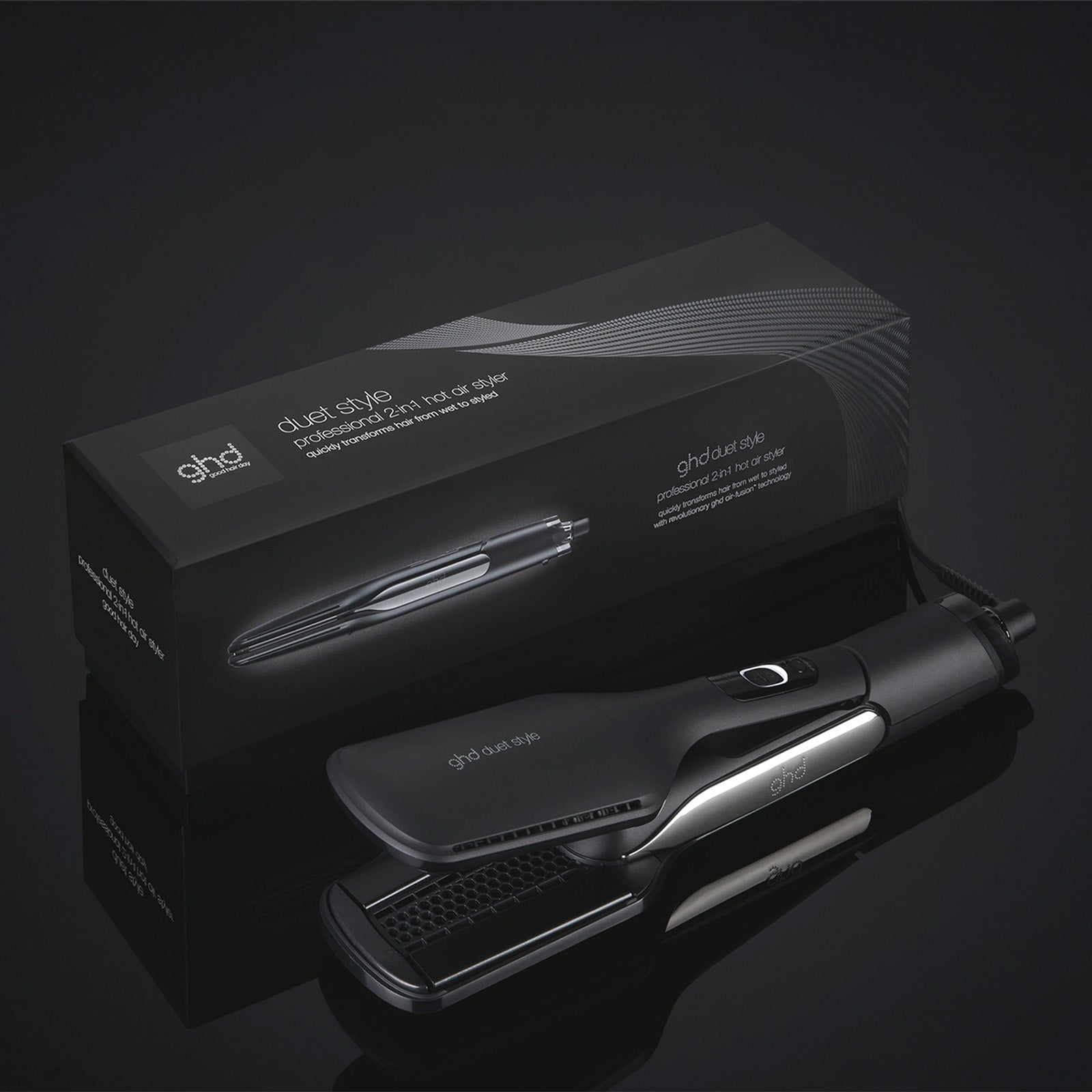 - Shine shot mode transforms the duet style into a ghd styler at the optimal temperature of 185°C with no air, for use on dry hair only.